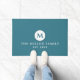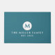 El doormat turquesa moderno presenta un diseño sencillo con medallón monograma estilizado en blanco con tipografía moderna. Personalice con personalizado monogramado inicial, nombre de familia y fecha establecida, o utilice el botón "contactar con este diseñador" para obtener ayuda. Un boda perfecto o un regalo de bienvenida para una pareja elegante.