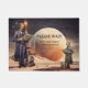Gracioso felpudo con una escena de fantasía con un planeta y científicos locos.