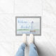 No deje de mirar su casa de playa o casa de campo para este magnífico faro acuático con un divertido juego de palabras "¡Playas de bienvenida!". Plantilla proporcionada para un nombre de familia y año establecido en la parte inferior.