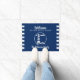Bienvenido a Nuestra Casa de Playa Personalizada con Su Personalizado Nombre Familiar Entryway Doormat. Con un exclusivo faro Nautical Classic en el hermoso azul marino.