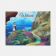 Faro encaramado en el borde de un acantilado sobre el océano en tonos azules de oro verde y violeta AI Generated Art por minx267
