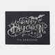 ¡Deséenle a sus invitados un "Halloween Feliz" con nuestro doormat de Halloween personalizado! El felpudo de Halloween personalizado presenta "Halloween feliz" con letras en tiza adornadas con murciélagos y arañas con fondo de pizarra. Personalice el doormat espeluznante agregando su apellido o texto personalizado.