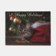 Este adorable gato gris está listo para dar paso a tu familia por Navidades. Con "Felices Fiestas" este felpudo presenta a un bonito gato debajo de un árbol de Navidad. Disfruta de esta alfombra hoy. Arte por: Myshun