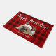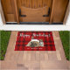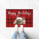 Felices jornadas Navidades graciosos bulldog francés tartán rojo platillo doormat.