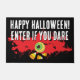 ¡Fija el tono para la espeluznante diversión justo en la puerta! Bienvenido a los invitados con este doorme de Halloween con un texto en negrita que dice "¡Feliz Halloween! Introduzca si se atreve." en un fondo negro. Esta alfombra, acentuada con una espeluznante mancha de sangre roja, un pájaro espeluznante y un célebre maíz dulce, es la mezcla perfecta de miedo y juguetón. Aunque el texto no es personalizable, el diseño llamativo lo convierte en un inicio de conversación instantáneo. Duradero y llamativo, es ideal para los porches, entradas o fiestas de la casa acosados -dándoles a los que quieren hacer trucos o tratar y a los visitantes una primera impresión terriblemente divertida.