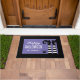 Ilustracion lindo de las piernas de una bruja y pies divertidos con Halloween Feliz y espacio debajo para el texto de personalizable. ¡El felpudo familiar perfecto para Halloween!