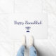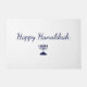 Feliz felpudo Hanukkah doormat, con una mano azul dibujada y diseño de escritura. Con letras de tipografía de personalizable, puede agregar su propio texto. Una divertida decoración de una casa de vacaciones al aire libre con un toque de temporada.
