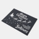 Muéstrate lo mucho que crees en la magia de los Navidades y de Santa Claus con este oscuro felpudo de Navidades grises que muestra la silueta del trineo de Santa con sus renos, volando en un rastro de estrellas. La leyenda de arriba dice Feliz Navidad con letras blancas escritas a mano. El texto es fácilmente personalizable con sus deseos, año y apellido o nombre de negocio. Este doormat hace que los Navidades perfectos decoren su hogar