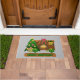Felpudo Feliz Navidad cerca de la chimenea de fuego árbol