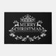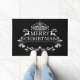 Doormat mostrado con fondo negro y estampado festivo de Feliz Navidad.