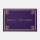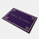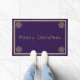 Doormat mostrado con fondo morado profundo, bordes plateados y dorados alrededor del felpudo y frase de "Feliz Navidad" en un texto optimista de color dorado cerca del fondo del doormat y cuatro copos de nieve de color dorado . Personalizar este artículo o compra tal cual.