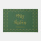 Este oscuro felpudo verde dice Feliz Navidad en un elegante guión de oro falso (no de Relieve metalizado). El texto de falso oro adicional para tu nombre está bajo el guión. Un patrón de oro falso festivo forma la frontera.