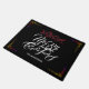 Un doormat festivo personalizado de Feliz Navidad para la temporada navideña con varios guiones negros y bayas huecas. El nombre de la familia se puede introducir en la plantilla.