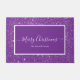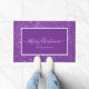 Doormat moderno de Feliz Navidad con un guion blanco sobre un fondo purpurina morado. Personaliza con tu apellido o texto.