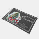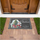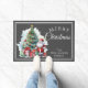 Una hermosa alfombra de Navidades de la temporada navideña festividad que comprende un ilustracion personalizado de Papá Noel (santa), un abeto decorado y regalos envueltos en caja. Texto de color dorado y fondo gris oscuro. Se puede modificar todo el texto. Personalizar el título a vacaciones felices o cualquier otra cosa, luego personaliza esta encantadora alfombra de puerta de Navidades añadiendo tus detalles.