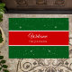 Añada un toque personal a sus Navidades de familia con este lindo doormat de apellido personalizado. El Mat presenta un fondo verde festivo con copos de nieve blancos de invierno. Al otro lado del fondo hay una cinta roja con el texto editable Bienvenida y el nombre de su familia. Esta alfombra de puerta le da un cálido toque estacional a su casa y también le da un gran encanto personalizado a su casa, cumpleaños, ducha de novia, boda, Navidades u otro regalo de vacaciones.