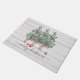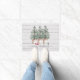 Navidades rústicos, felpudo de vacaciones con pinos Navidades acuarelas, luces de cuerda sobre un fondo de madera, y su nombre familiar sobre un fondo de madera clara.