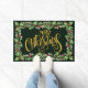 El doormat de vacaciones de Navidades festivos tiene Feliz Navidad en oro en el medio y en el hueco y bayas rojas por todo el borde. ¡El fondo negro hace que el hueso y las bayas y la tipografía sean realmente POP! Este aparejo al aire libre para Navidades es una manera muy divertida de hacer que los visitantes se sientan como en casa cuando vienen de visita.