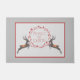 Doormat moderno y festivo con temática navideña presenta un par de renos con corona de hojas rojas de la Paz dibujada a mano sobre fondo gris