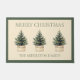 Esta sencilla alfombra de puertas para Navidades presenta pequeños árboles rústicos de Navidad con luces blancas. Personaliza con tu elección de texto especial de vacaciones.