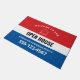 Bienvenido a los clientes potenciales a su evento de la casa abierta con este personalizable. Las letras grandes facilitan la lectura. La plantilla fácil de personalizar hace que sea perfecto para los agentes inmobiliarios para dar una primera impresión profesional. Diseñado en rojo blanco y azul.
