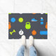 Fuel your fitness journey with this bold, high-energy seamless pattern packed with essential gym essentials! Scattered across a sleek dark gray background are vibrant icons of dumbbells, kettlebells, jump ropes, water bottles, running shoes, medicine balls, stopwatches, resistance bands, exercise balls, and more in electrifying neon lime green, fiery orange, electric blue, and crisp white. The clean, flat vector style delivers a dynamic, motivational gym vibe—perfect for workout enthusiasts, trainers, CrossFit fans, and anyone who thrives on sweat, strength, and that post-session endorphin rush.