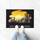 Flauta Suroeste Jugando Doormat De Rug Kokopelli. Combinación de colores que permite personalizar los colores de fondo para que coincidan con la decoración. Kokopelli en un paisaje desértico entre los sahuaros. Culturas indias nativas americanas. Atribuido a antiguos extraterrestres o arte tribal e inspirado en dibujos de cuevas y rocas. Personalizar tus colores y estilos de alfombra de puerta nativo americano estilo suroeste. Gran idea de regalo.