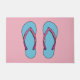 Un ilustracion con un par de chanclas rosas y azules. ¡Es verano! Tomemos un descanso y nos divirtamos un poco bajo el sol. ¿No estás emocionado de preparar todas tus cosas para las vacaciones? No olvides tus chanclas.