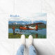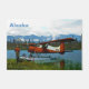 Un piloto de bush se encuentra cerca de su avión de Havilland Canada DHC-2 Beaver a la orilla de un lago en el extremo norte; montañas y árboles están a lo lejos. También aparece un texto de personalizable que dice "Alaska". Esta imagen se derivó, en parte, de una foto del Servicio de Pesca y Vida Silvestre de Estados Unidos.