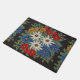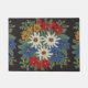 Una imagen de un estampado de flores con una mirada de la costura de las flores alpinas blancas de Edelweiss de Europa en su producto. Colores azules, rojos, amarillos, y blancos. Alpinum del Leontopodium de Suiza, de Alemania, y de Austria.