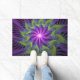 Una flor de fantasía colorida y animada, arte fractal púrpura y verde abstracto. Diseño para tu felpudo y más.