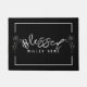 Hermosa estera de puertas frontales botánicas florales blancas y negras, con un estilo de escritura moderno y elegante en blanco, y una letra seria que dice que se le bendice con su nombre personalizado.