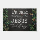 Nuestro inspirador felpudo adornado con una madera negra y un fondo floral verde y un texto que solamente estoy hablando con Jesús hoy. Vea nuestra línea completa de productos para el hogar personalizado en nuestra tienda Zazzle.