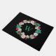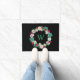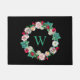 Cubierta de puerta atractiva hecha en negro, con gráficos de una corona floral pintada. Un monograma verde de una letra, en medio de la corona, está listo para personalizar para usted o como una gran idea de regalo para el calentamiento de la casa.