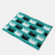 Una era atómica del siglo XX estilizó el patrón de arte abstracto con pétalos de flores geométricas. Los colores son negro, blanco y verde azulado/turquesa.