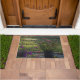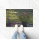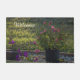 Un felpudo con una fotografía de las flores rosadas de Bougainvillea, con la palabra Bienvenida. La fotografía de las flores rosadas de Bougainvillea está protegida por mi derechos de autor, Christina Spiegeland. Copyright 2016.
