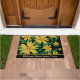 Un diseño floral y luminoso que incluye cabezas de flores de margarita amarillas y hojas verdes, dispuestas siguiendo un patrón.