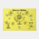 Tres hermosas flores ilustradas sobre un fondo amarillo suave. Además de pequeñas mariposas azules. Agregue sus propias palabras para la personalización.