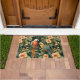 El diseño de esta alfombra tropical temática presenta flores tropicales exuberantes y dos loros, perfecto para que su casa tropical le invite a entrar.