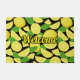 Cortes y hojas de limón. Patrón sin foco. Color de fondo personalizado. Texto personalizado.