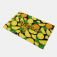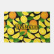 rodajas y hojas naranjas. Patrón sin foco. Color de fondo personalizado. Texto personalizado.