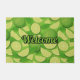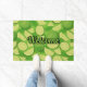 Cortes y hojas de limón. Patrón sin foco. Color de fondo personalizado. Texto personalizado.