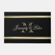Elegante fondo negro y rayas horizontales doradas con monograma
