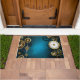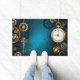 fondo turquesa, texturado, de vapor punk con bronce y oro, llave de plata y reloj. Estilo Steampunk.