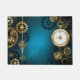 fondo turquesa, texturado, de vapor punk con bronce y oro, llave de plata y reloj. Estilo Steampunk.