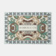 Un elegante portero con su placa de nombre sobre un hermoso patrón de formas geométricas florecientes en verdes, crema, bronceado, azul. Un llamativo personaje lleno de flores en la entrada doormat que recuerda a los mosaicos antiguos.