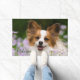 Perro del Papilón Blanco y Rojo sentado en un prado rodeado de Cuckooflower. El Papillon es una especie de juguete alerta, amigable y muy inteligente. Una pequeña foto adorable de perro tomada por Katho Menden, esta puerta de alfombra de bienvenida es una encantadora idea de regalo especial para los amantes del perro.