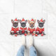 Adorable French Bulldogs, with their distinctive bat ears, are ready to celebrate in their festive Santa outfits! A charming and trendy design for Frenchie lovers and holiday gifts.