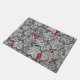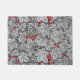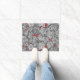 Doormat en un patrón Art Nouveau de fresas, con hojas, flores y bayas, basado en un diseño textil de William Morris vintage, realzado digitalmente y coloreado en blanco y negro, con un fondo gris/gris de grafito oscuro y un acento de bayas rojas profundas