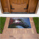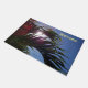 Un Doormat con una fotografía de las frondas o de las hojas de palma de la palma, con el sol brillando a través de las hojas. Usted puede suprimir o cambiar la palabra "recepción".